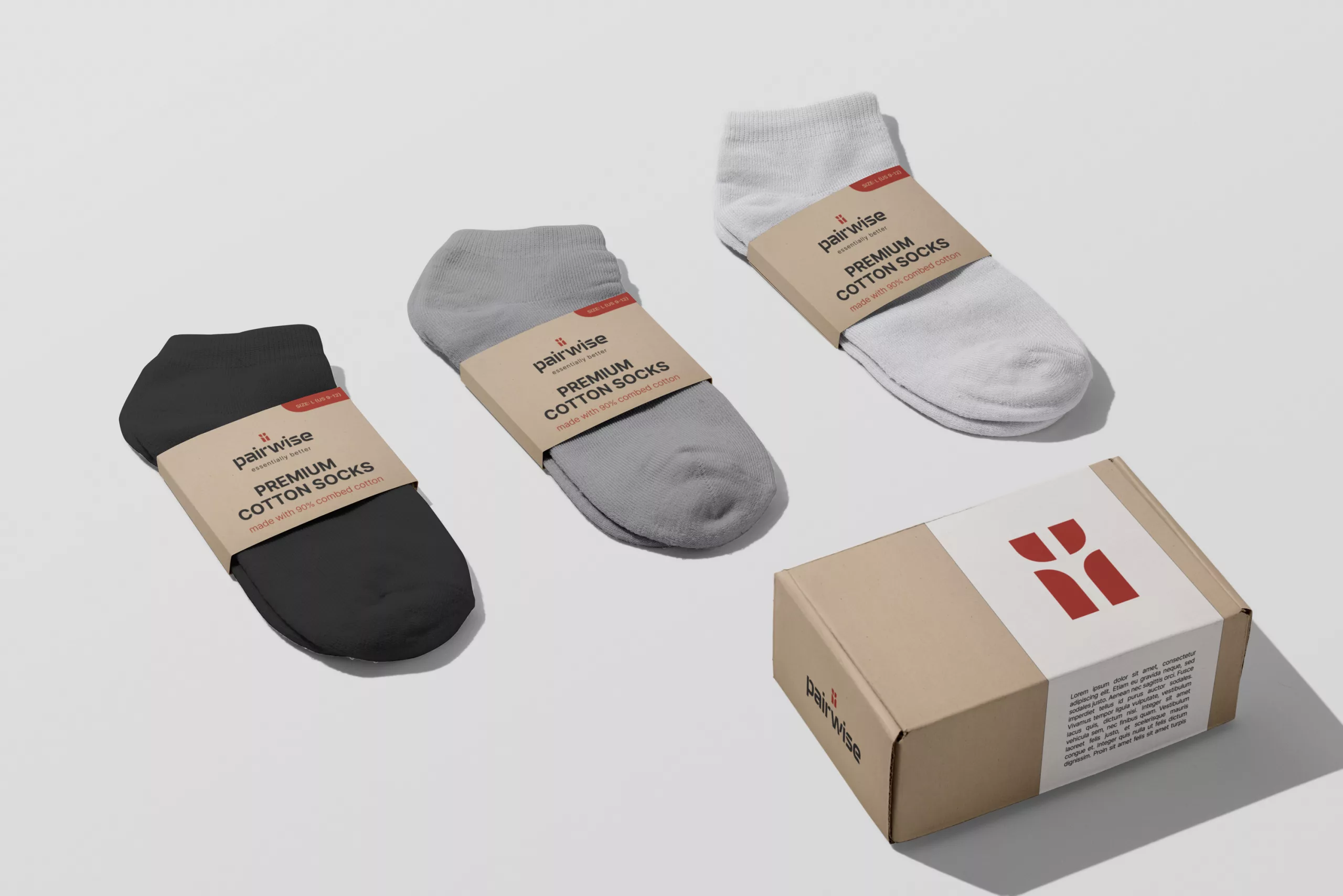 The main objectives in creating the project were to convey premium quality through simplicity. The product’s identity and packaging had to reflect the company’s approach—creating high-quality items from natural materials. The business started out making socks containing 90% cotton and plans to expand its product line in the future. Therefore, the identity had to focus on values rather than the product.