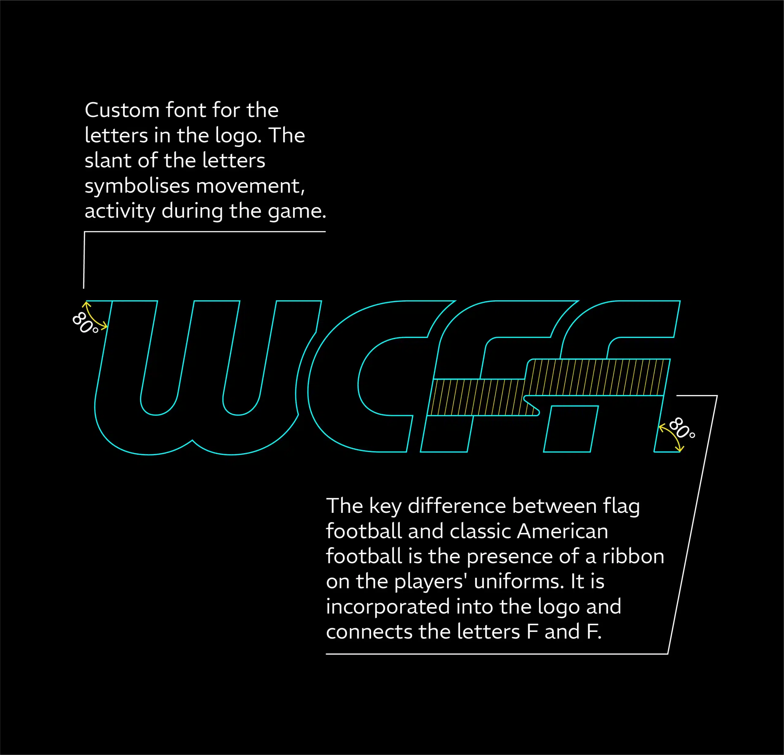 The main goal in developing the logo was not to overload it, but at the same time to fulfill all the client’s wishes. The font part of the logo was developed specifically for this project based on an existing font. The letters overlap each other, symbolizing that this sport is a team sport. The letters are slightly tilted, emphasizing the movement and dynamism of the game. A ribbon was added to the logo, connecting the letters F, and the colors were combined with a gradient to complement the shape of the ball along the outer edge.