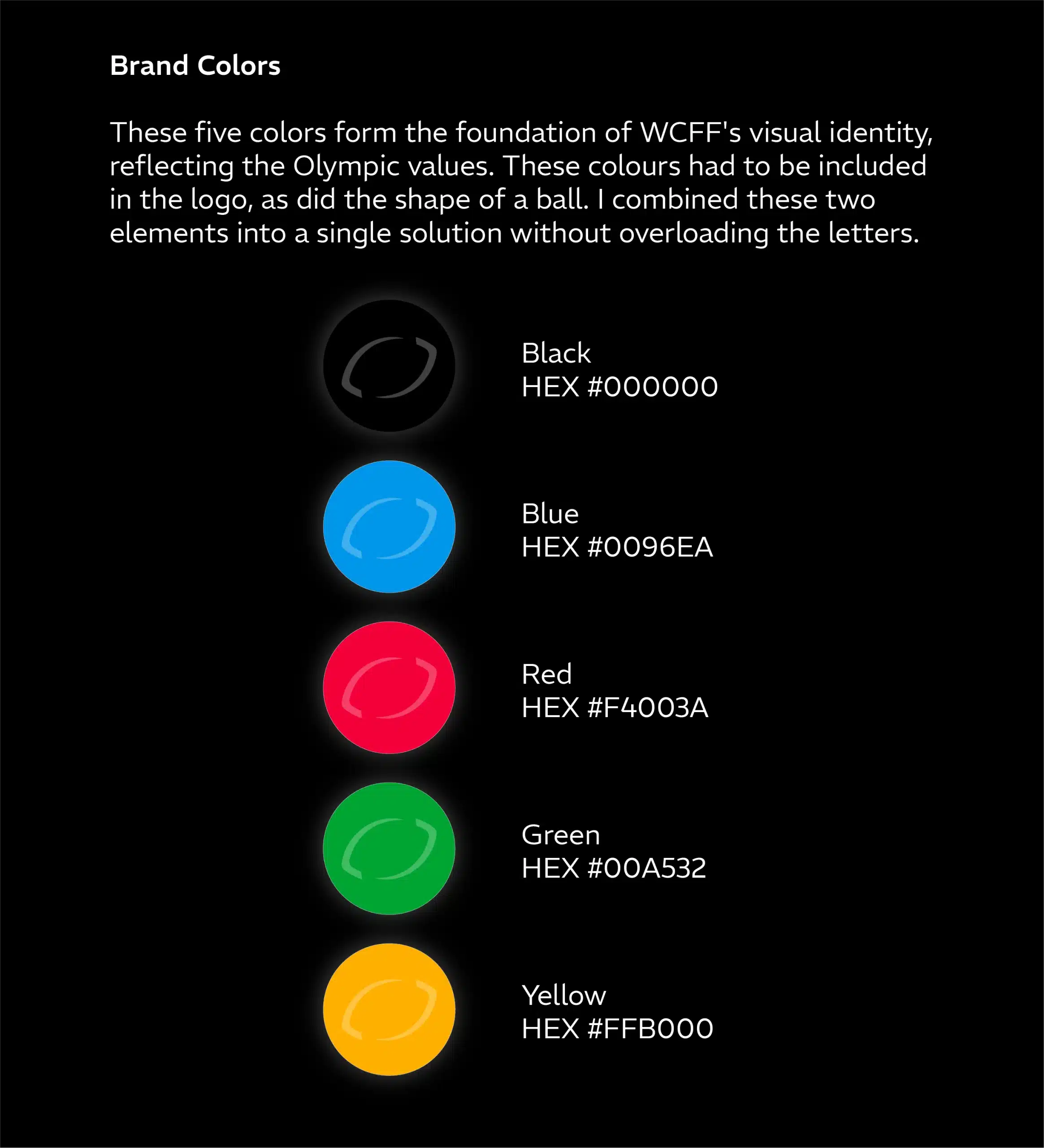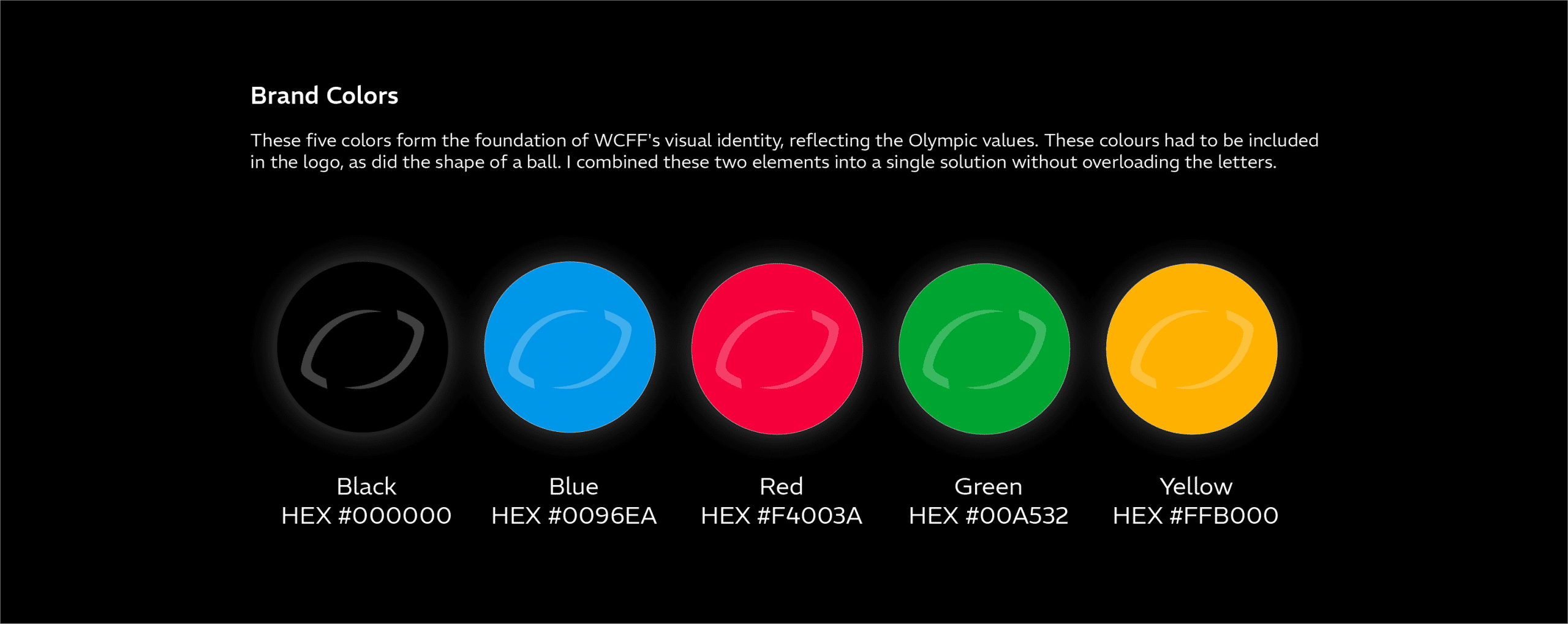 The client’s requirements included: developing a unique font logo, implementing a ribbon in the logo, defining and applying brand colors that would echo the Olympic colors, and adding a ball shape to the logo.